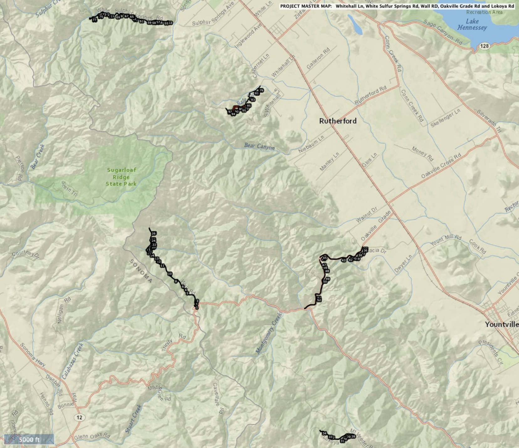 Whitehall Lane, white Sulfur Springs Rd, Wall Rd, Oakville Grade and Lokoya Road